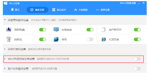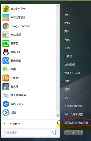1.當前如果是用的WIN7風格,想換WIN10菜單風格,點擊到“回到WIN10菜單風格”。