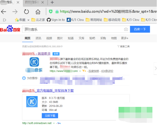 2、進入【百度】,接著搜索想要下載的軟件,以【酷狗音樂】為例。
