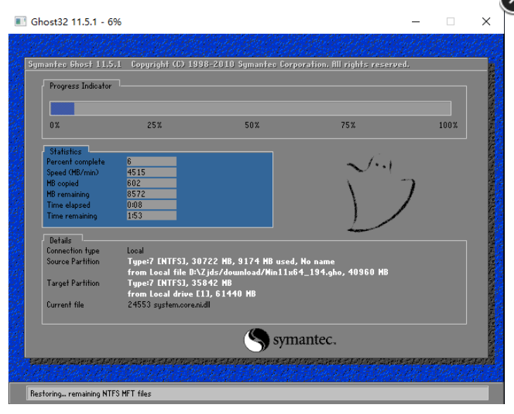7、系統備份還原完成后,會開始系統自動安裝,安裝完成自動重啟后即可進入系統。