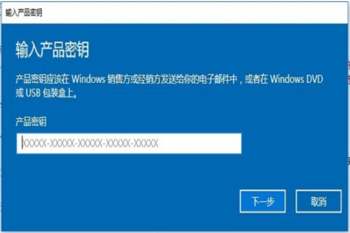 4、根據系統版本,選擇輸入上面的密鑰,再點擊"下一步",等待激活成功即可。