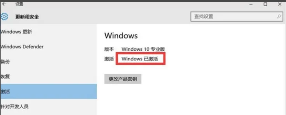 7、最后打開控制面板中的“設置”界面,單擊“更新和安全性”按鈕進入,找到“激活”選項卡,可以看到當前的Win10 Professional版本已被激活。