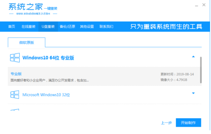 2、進到界面以后,選擇我們應該Win10系統開展安裝,點擊開始制做。