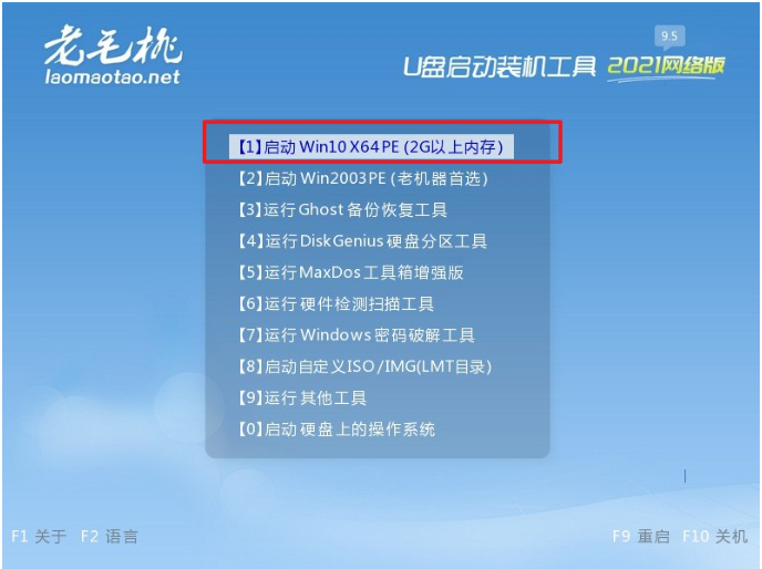 3、如圖所示,進入老毛桃PE選擇界面,選擇【1】啟動winpe系統回車操作即可。