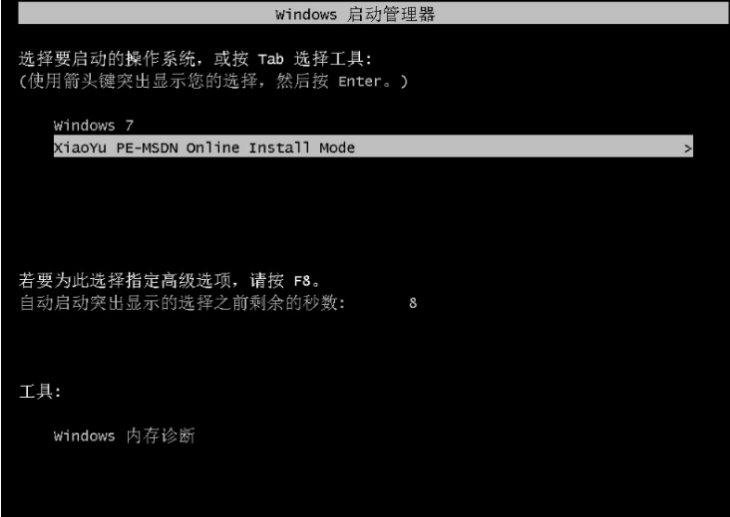 4、來到啟動頁面之后,選擇第二項按回車鍵進入到xiaoyu-pe系統。