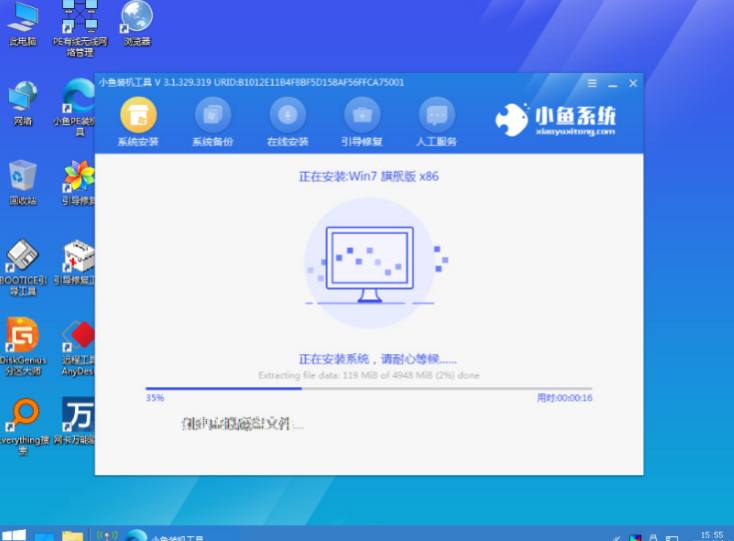 5、當電腦在pe系統內,小魚裝機軟件就會自動開始安裝win10系統。