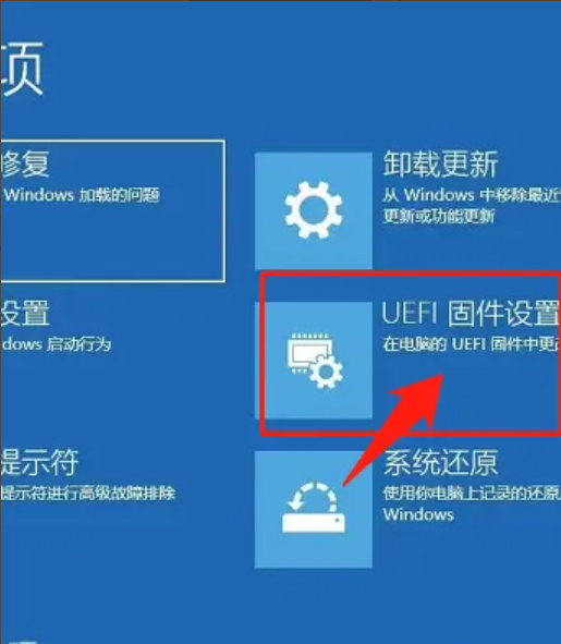 5、在高級設置界面中,找到固件設置并點擊重啟即可進入bios。