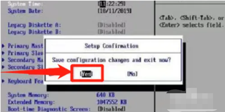 3、設置完BIOS設置后,按F10即可保存當前配置,再按enter回車鍵,彈出窗口點擊yes即可退出。