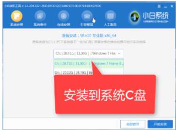 8、選擇好C盤以后,點擊“開始安裝”,稍作等待即可。