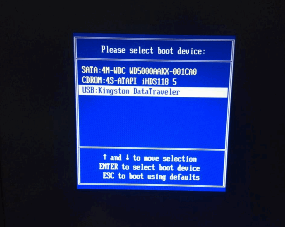 5、重啟電腦,在開機畫面出現時,反復按下U盤啟動快捷鍵,選擇USB啟動項進入。