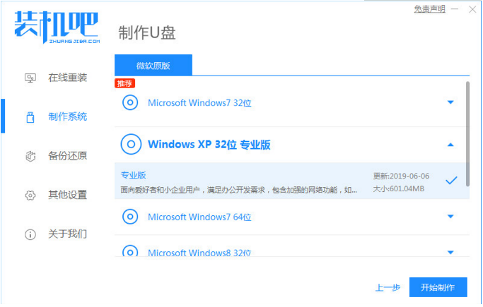 2、選擇自己需要安裝的系統,點擊開始制作。