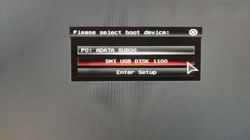 2、在進入系統啟動菜單中選擇帶有USB字樣的選項并回車