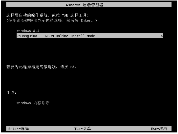 2、重啟電腦,選擇進入pe系統自動安裝;
