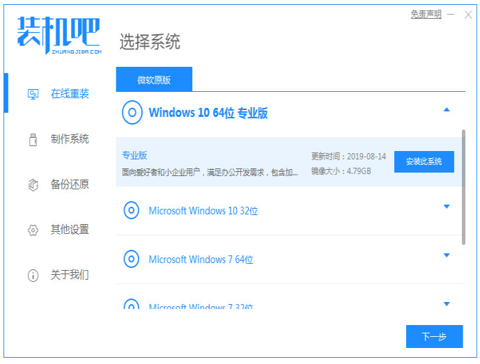 方法二:使用裝機吧一鍵重裝系統軟件在線重裝win10系統