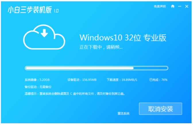 方法二:借助小白三步裝機版軟件重裝系統win10