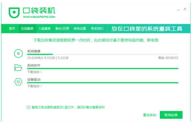 4、裝機工具此時將會開始自動下載安裝系統所需要的資源,請大家耐心等待。