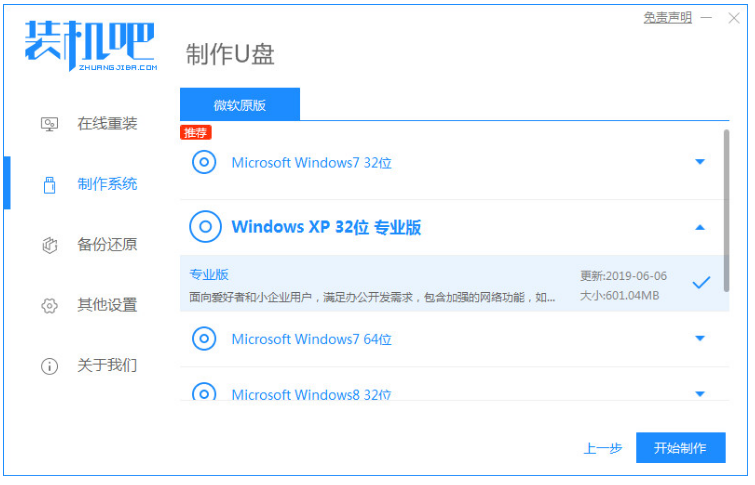 1、首先下載安裝一個裝機吧一鍵重裝系統軟件并打開。準備一個8GB以上的U盤。選擇制作系統,點擊開始制作.