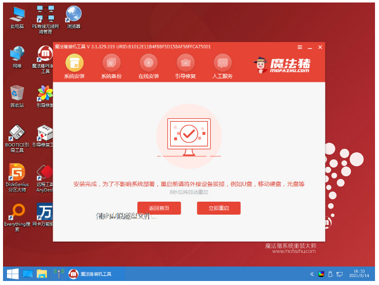 6、系統安裝完成后,再次點擊立即重啟選項。