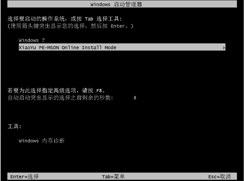 4、插入啟動盤進需要安裝的dell筆記本電腦中,重啟電腦并按啟動熱鍵進啟動界面,選擇u盤啟動項進入第一項pe系統,然后打開小魚裝機工具,選擇win10系統安裝到c盤。