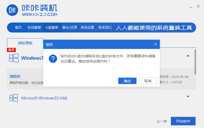 方法二:使用咔咔裝機工具U盤操作方式