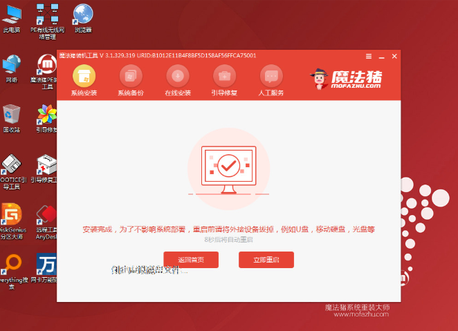 6、安裝完成之后需要繼續重啟電腦。重啟電腦之后就是新裝的系統。