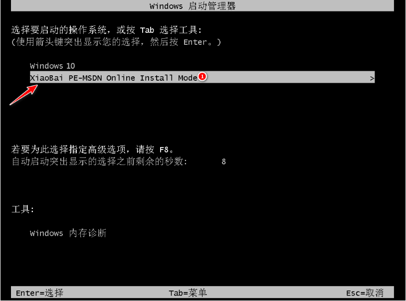 來到開機選項界面,如圖示,選擇第二項進入xiaobai-pe系統。
