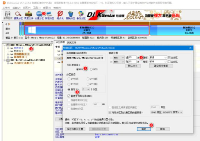3、再點擊【快速分區】,選對我們要分區的磁盤,設置分區數目、分區大小以及分區類型,卷標為【系統】的系統盤建議50G以上,選中分區類型 mbr,對齊分區選中4096扇區,分區數目根據硬盤大小決定。