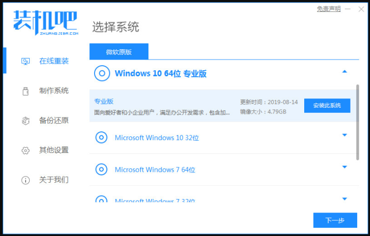 方法二:通過裝機吧裝機工具重裝系統1、要想重裝電腦win10系統,首先需要備份好電腦上重要的個人數據,然后選擇自己想要安裝的系統,點擊安裝此系統。