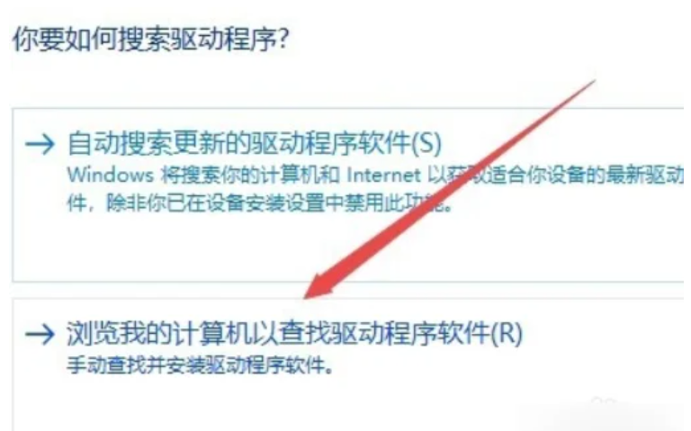 7、然后點擊下面的“瀏覽我的計算機以查找驅動程序軟件”快捷鏈接。