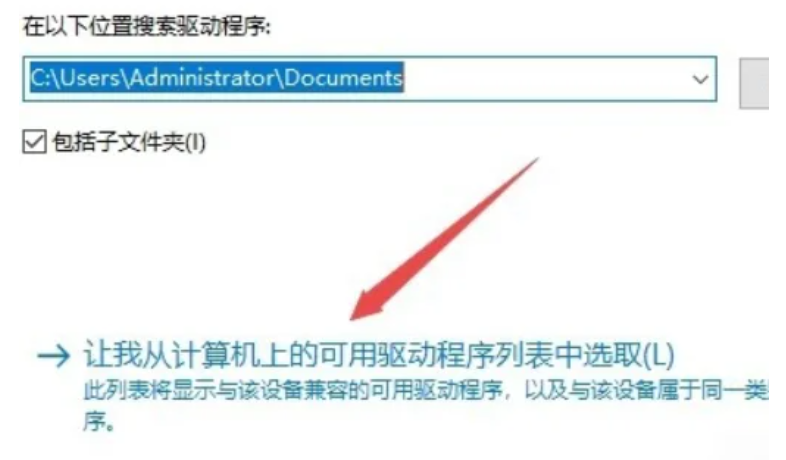 8、接著在新打開的窗口中點擊“讓我從計算機上的可用驅動程序列表中選取”快捷鏈接。