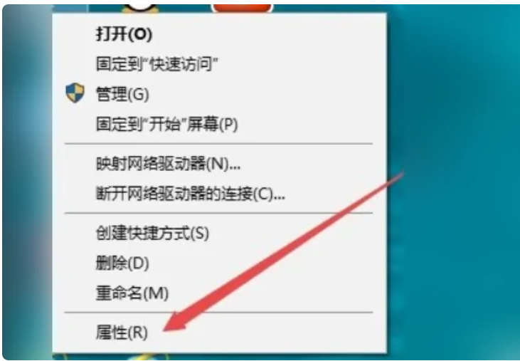 2、右鍵點擊桌面上的“此電腦”圖標,在彈出菜單中選擇“屬性”菜單項。