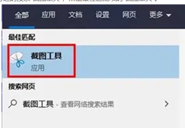 (1)在win10開始菜單旁邊的搜索“截圖工具”,點擊最佳匹配項的“截圖工具”。