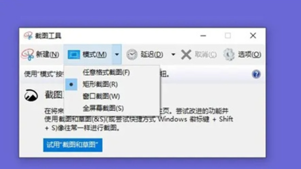 (2)打開Win10的截圖工具后,可以看見截圖模式很多。