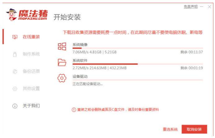 2、接下來軟件就會幫助我們重裝下載系統,只需要耐心等候。