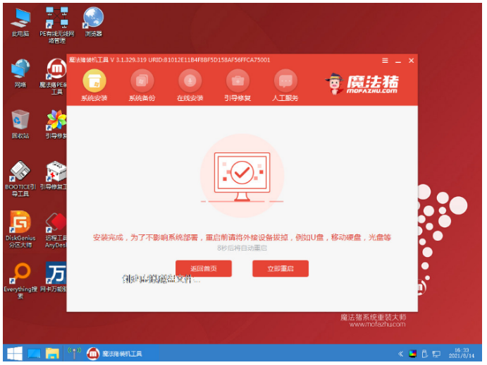 6、在PE系統中,軟件會自動幫助我們重裝,重裝完后直接重啟電腦。