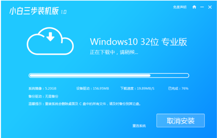 軟件版本:小白三步裝機版1.0+小白一鍵重裝系統 v2290