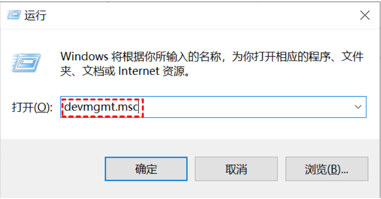 1、點擊Win+R并輸入devmgmt.msc以啟動設備管理器。