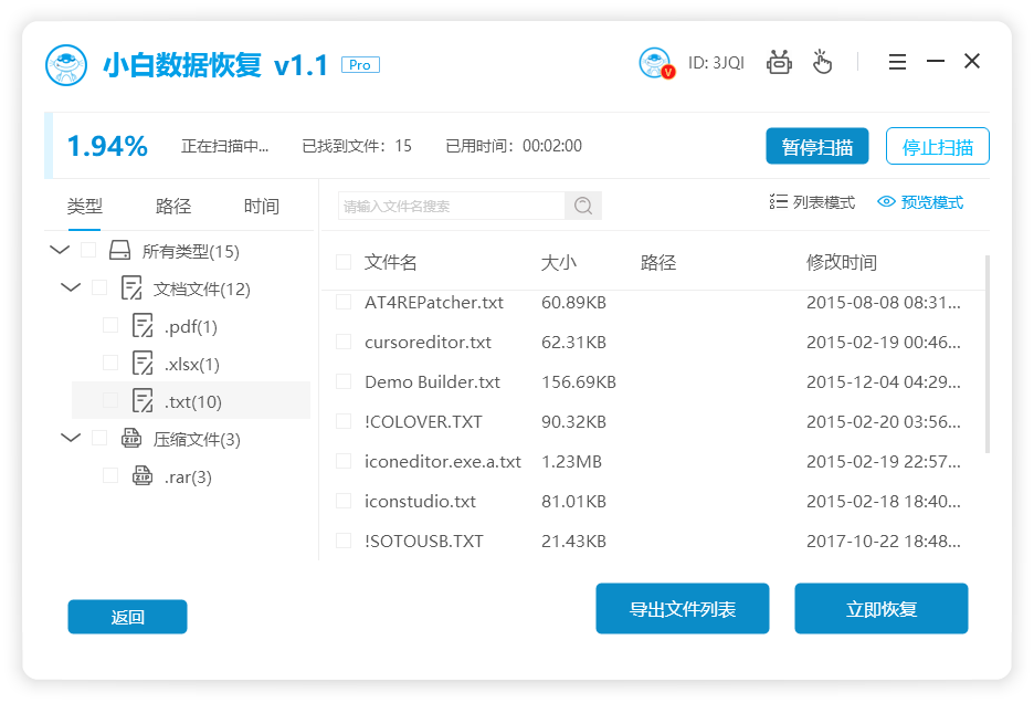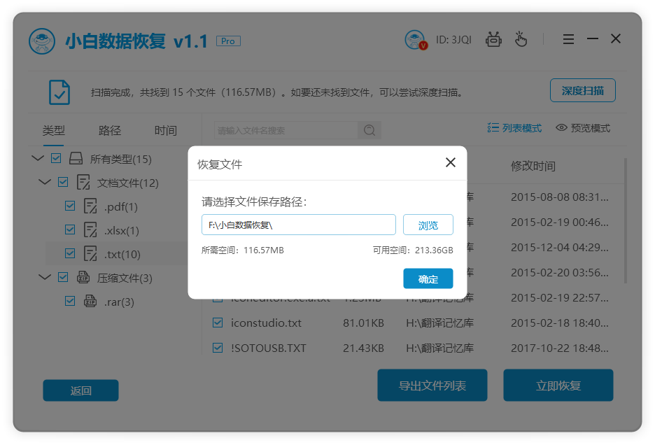 軟件版本:小白數據恢復工具v1.1