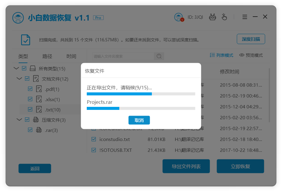 5、等待導出已恢復的文件。
