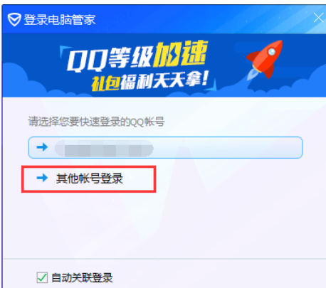 3、這樣會出現下圖中的界面,點擊界面中的“其他賬號登錄”選項,然后輸入賬號密碼登陸即可。以上就是騰訊電腦管家切換賬號的詳細方法,有需要的小伙伴可以來下載使用。