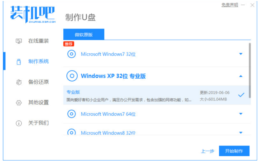 2、接著下載系統鏡像,選擇系統之后點擊開始制作。
