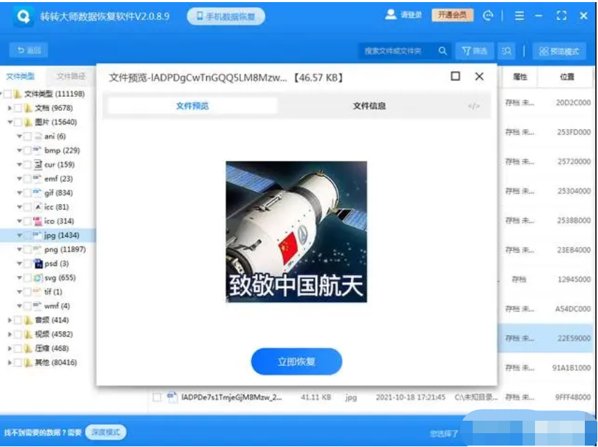 4、找到文件后雙擊預覽一下,預覽成功就說明文件恢復沒問題,要是預覽失敗了,那么有可能是文件受損了,將預覽成功的文件點擊恢復即可恢復。
