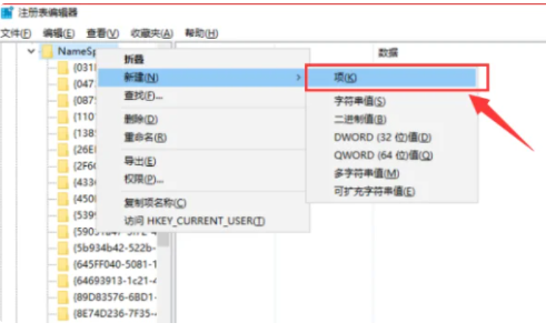 4、隨后在該目錄下新建項:{645FFO40-5081-101B-9F08-00AA002F954E}。