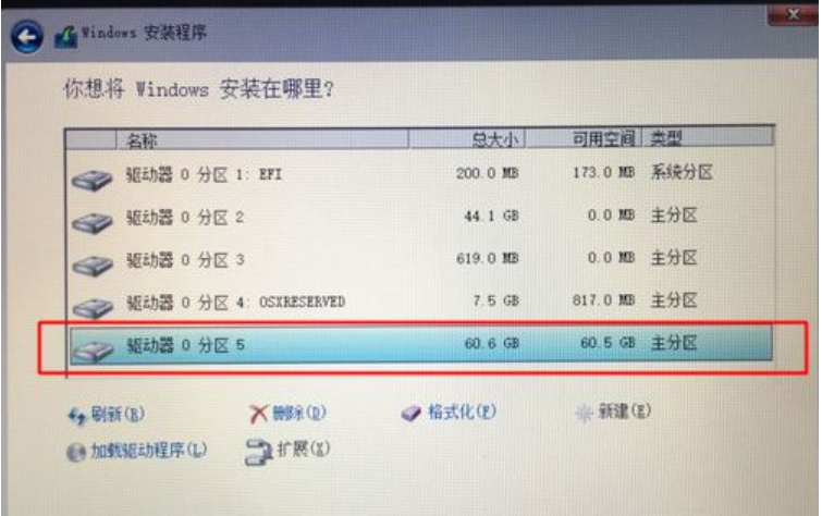 13、格式化之后,繼續選中這個分區5,點擊”下一步“。