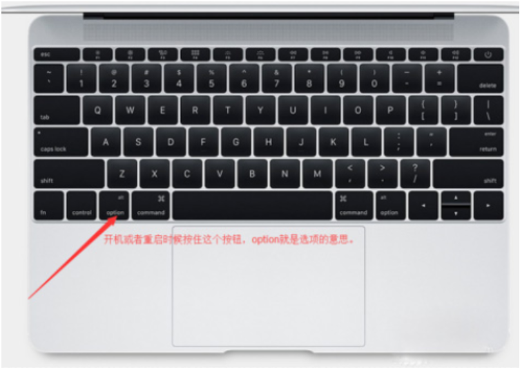 2、打開電腦,在開機或重啟時長按“option”鍵進行設置。