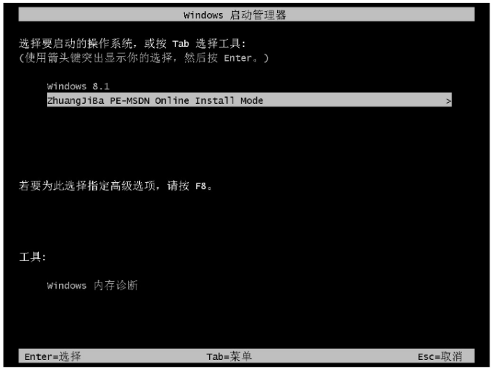 4.在重啟電腦的途中會進入到如以下界面,選擇帶有光標的選項進入pe系統。
