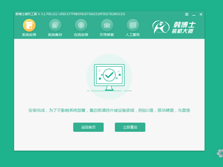 6、提示安裝完成后點擊立即重啟。