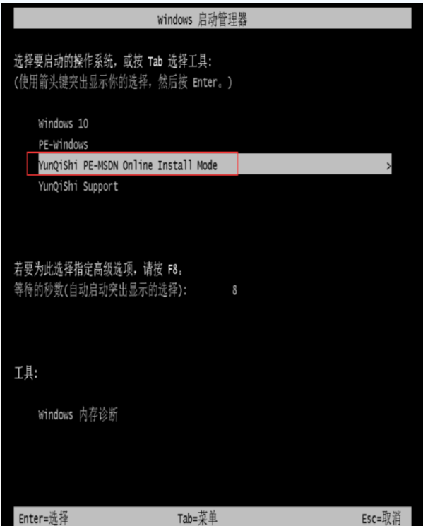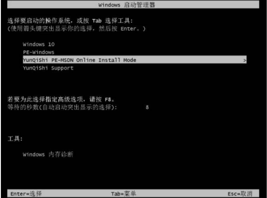 3、重啟電腦,選擇YunQiShi PE進入系統。