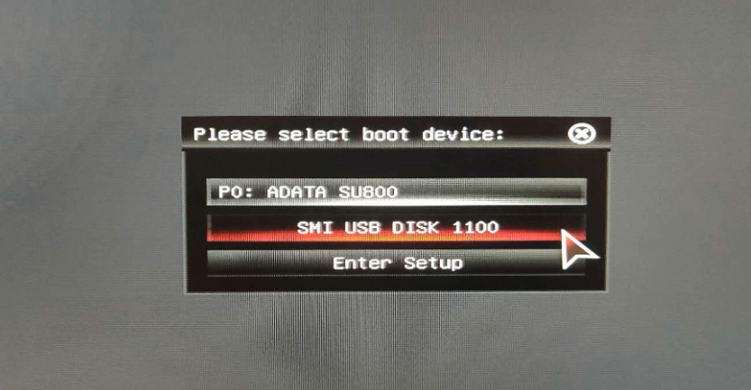 2、在進入系統啟動菜單中選擇有USB字樣的選項并回車。