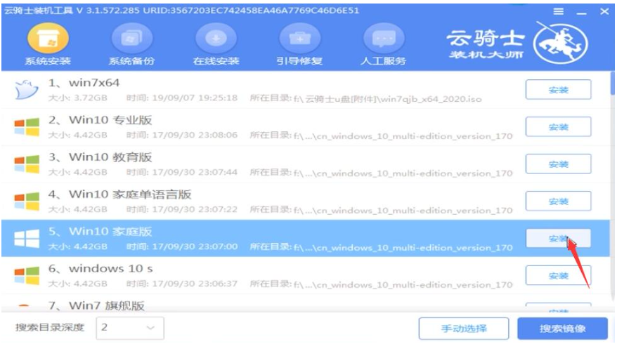 4、進入系統后,軟件會自動打開搜索系統鏡像,找到鏡像,點擊安裝