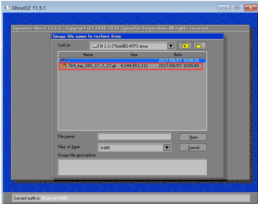 3、來到手動運行ghost12的界面,點擊最上方的方框,選擇GHO系統文件所在的盤符,如上圖所示,小編的GHO文件在D盤的ghost目錄下。